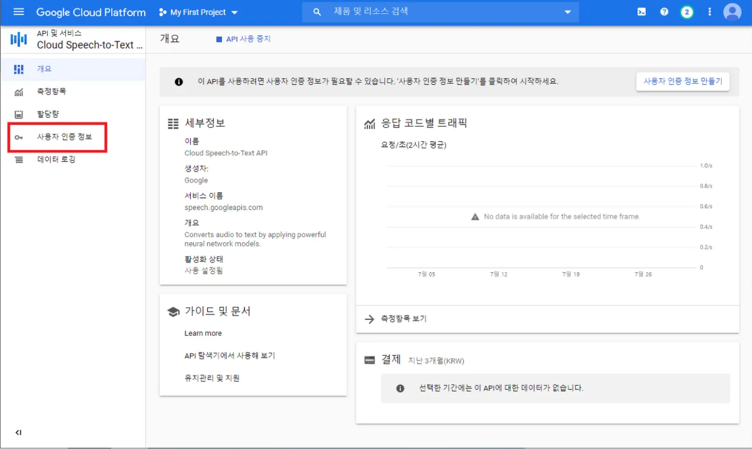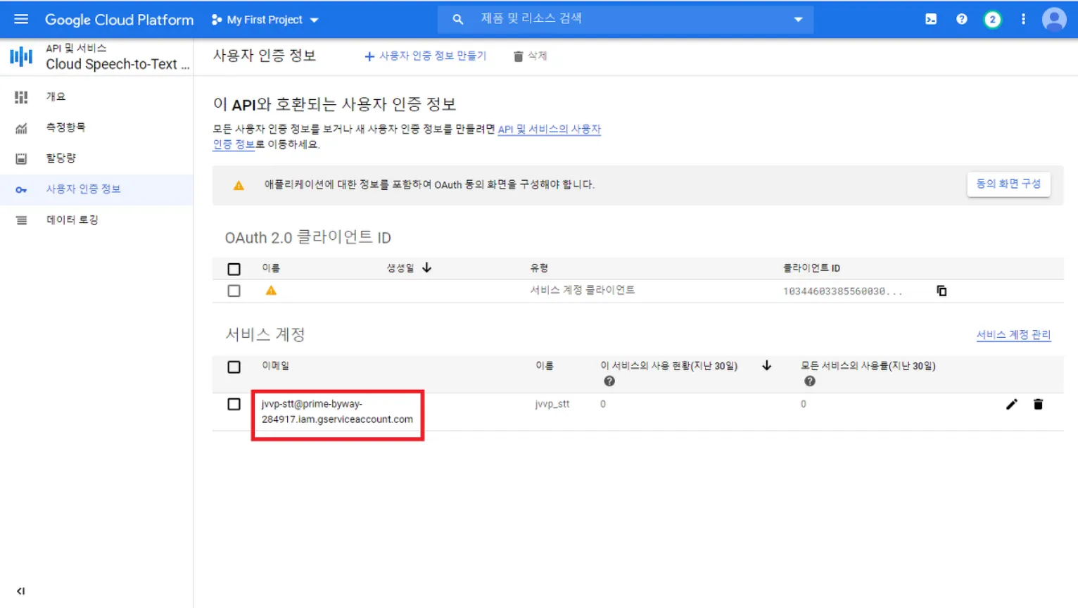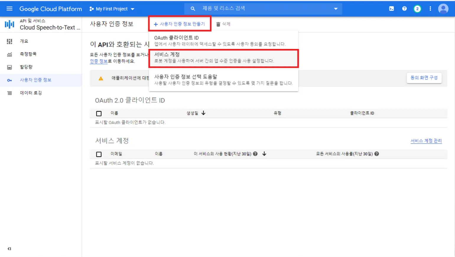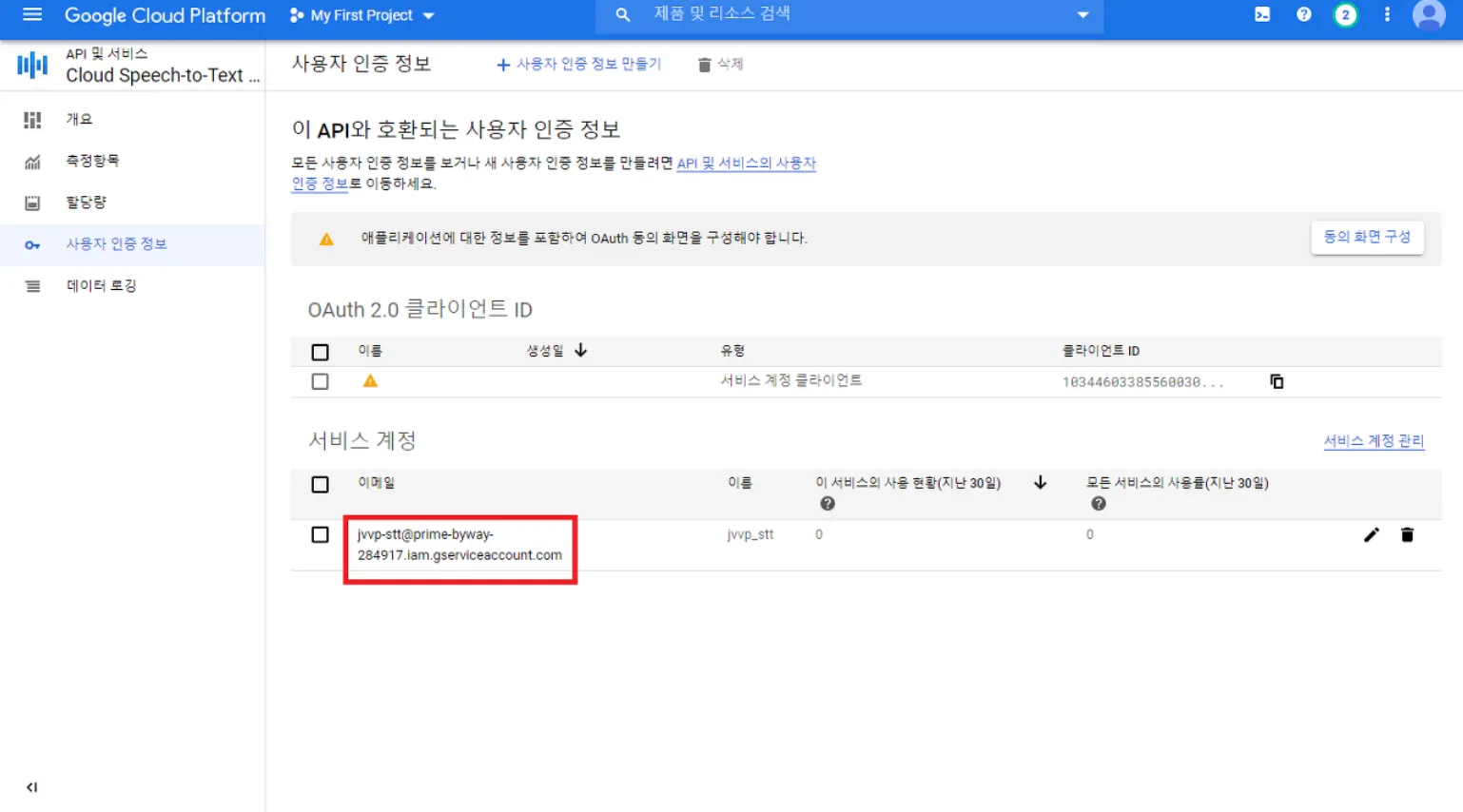 2. Speech to Text API 설정