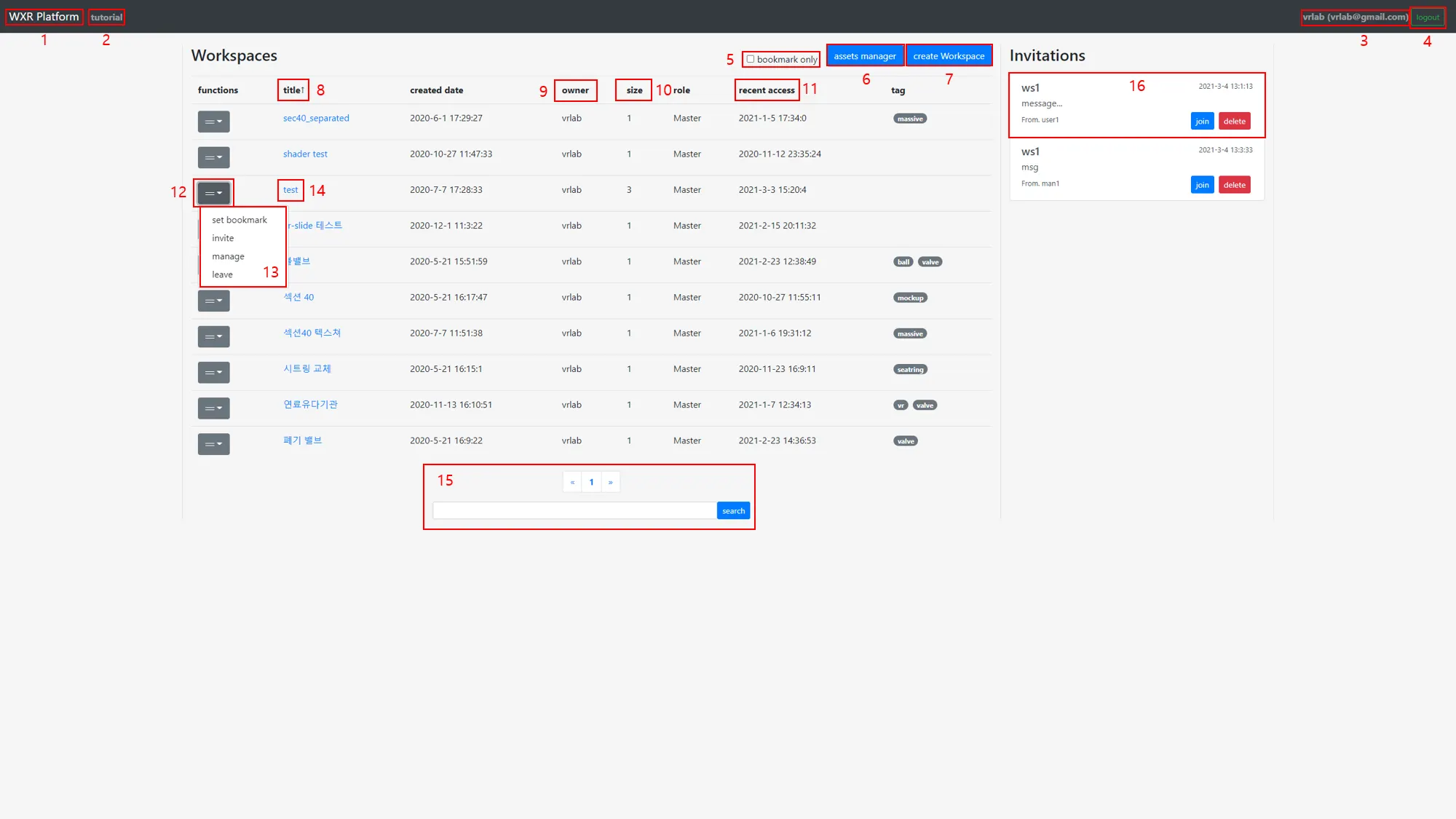 invite 버튼은 다른 유저에게 해당 워크스페이스에 가입할 수 있는 초대장을 보내는 버튼이다. 적절한 권한을 보유해야만 초대장을 보낼 수 있다.