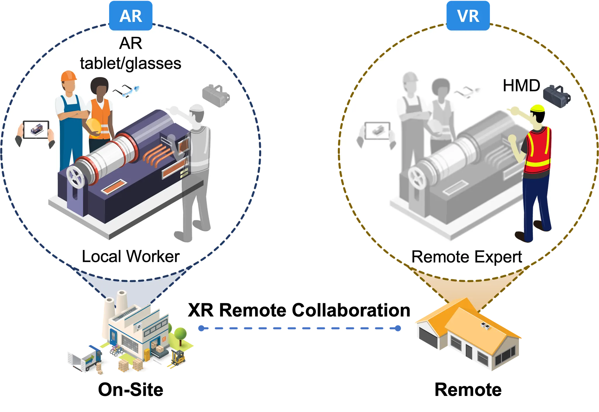 WXR enables multilateral XR collaboration through a web browser. Users can change the way they interact with the scene at any time by switching between 3D, VR, and AR modes.